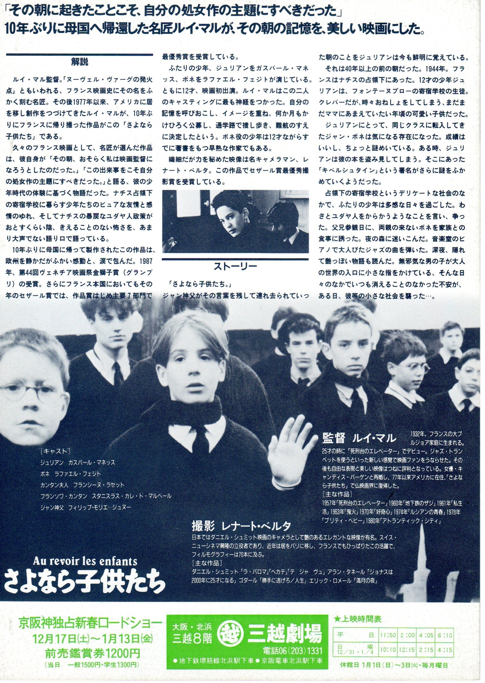 Au Revoir les Enfants Japanese Chirashi Mini Ad-Flyer Poster 1987