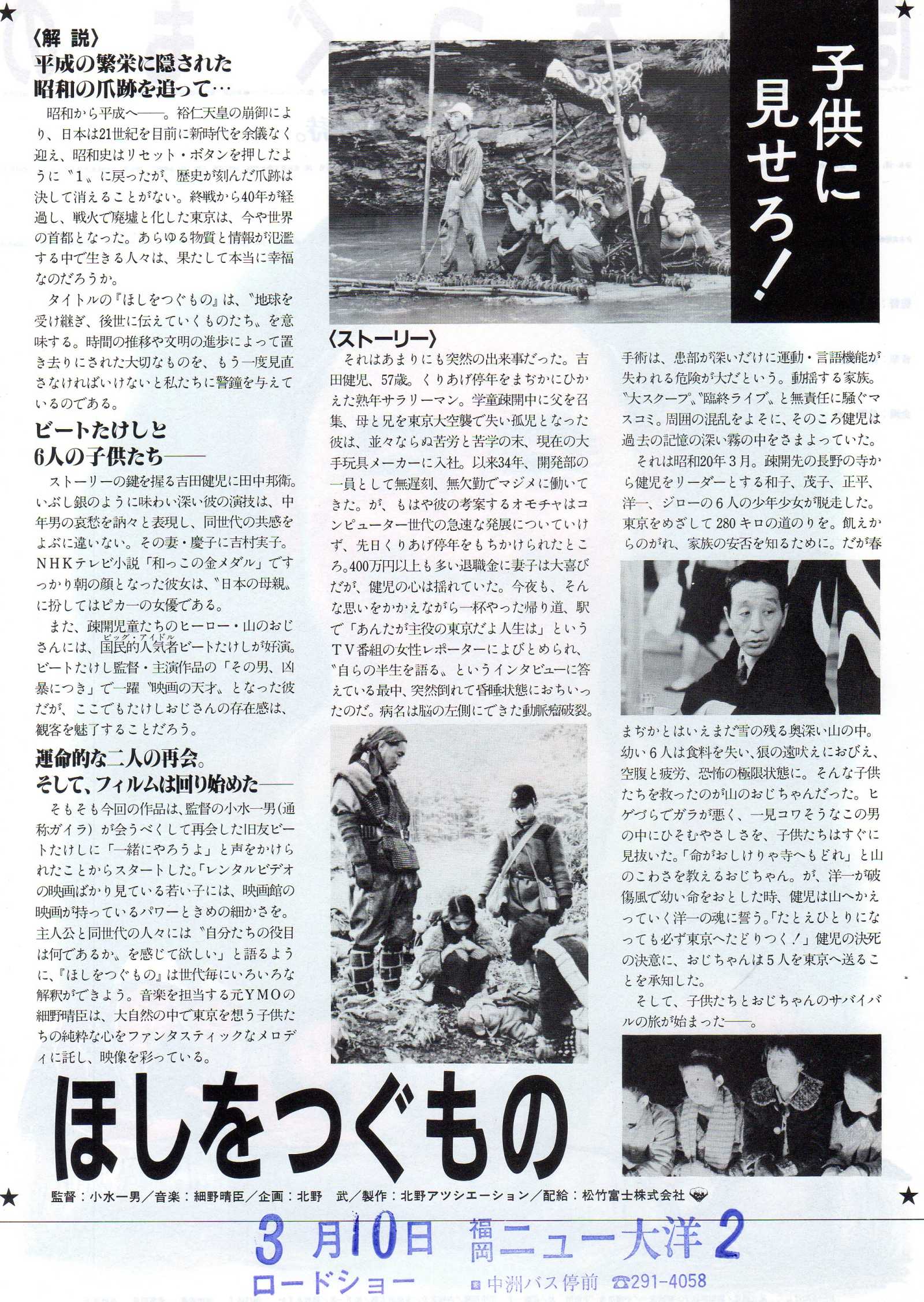 Hoshi Wo Tsugu Mono Japanese Chirashi Mini Ad-Flyer Poster 1990 Takeshi Kitano