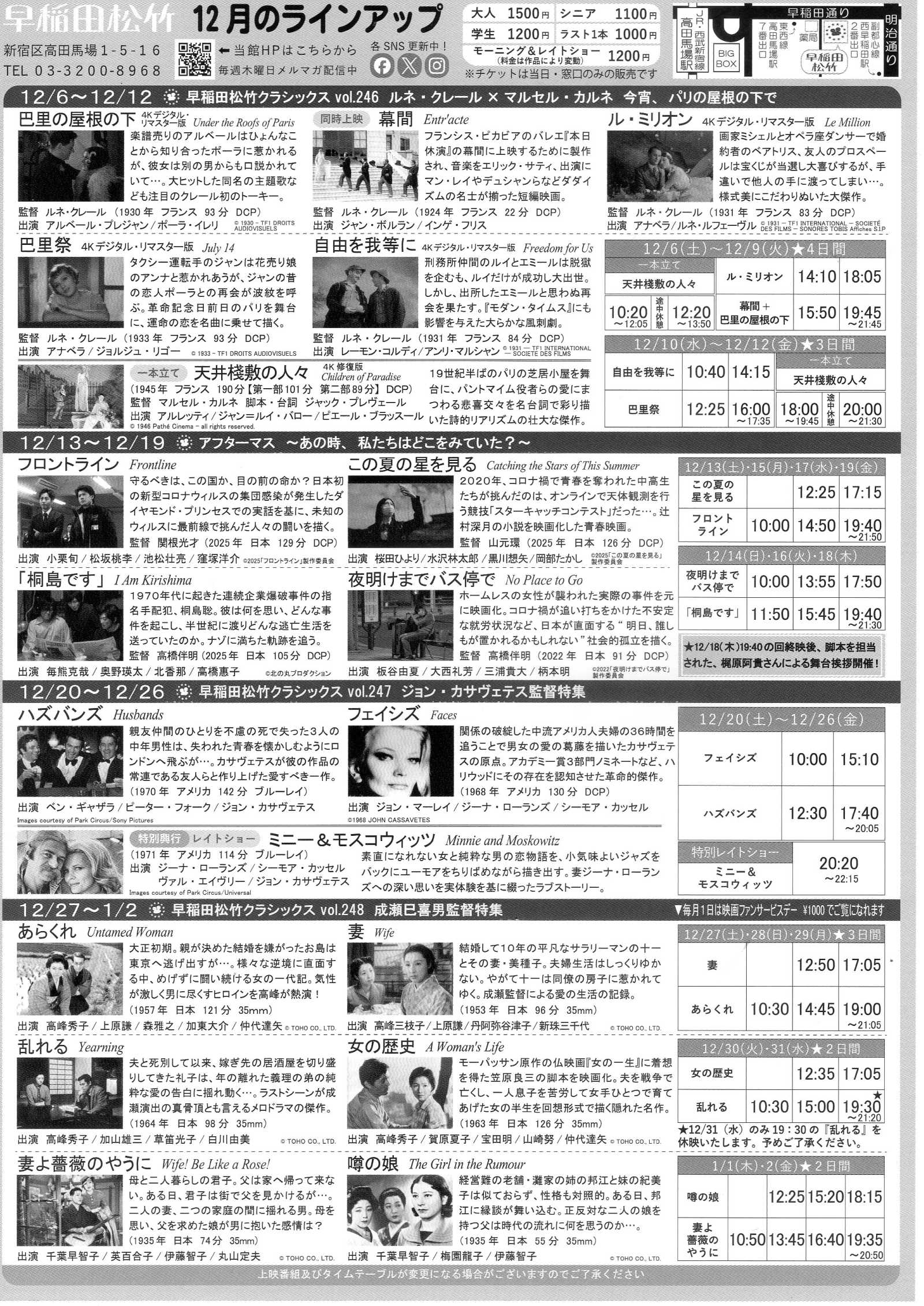Waseda 2025-12 Cassavetes Japanese Chirashi Mini Ad-Flyer Poster 2025